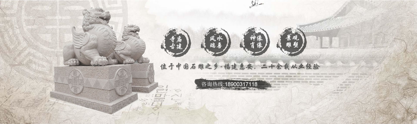 福建省九龍星園林古建有限公司坐落于著名的“中國石雕之都”福建省惠安縣,是一家集石材創(chuàng)作、加工、安裝、銷售于一體的石材石雕專業(yè)生產(chǎn)企業(yè)。在石雕牌坊的生產(chǎn)加工上有豐富的經(jīng)驗及優(yōu)勢,擁有寬大的廠房、優(yōu)質(zhì)的礦產(chǎn)資源、工藝精湛的雕刻師、工程師及強大的管理團隊,多年來精心打造無數(shù)經(jīng)典工程,產(chǎn)品暢銷東南亞、歐美市場及許多國內(nèi)工程,深受海內(nèi)外客商及業(yè)內(nèi)人士的青睞與好評。公司主導(dǎo)經(jīng)營:園林古建筑工程、園林景觀工程、 ...